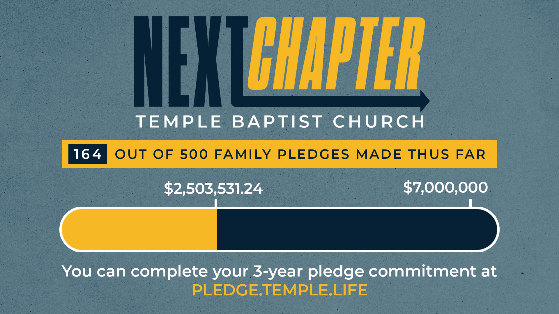 “As a result of the Next Chapter Campaign, we are looking forward to seeing the vision God has prepared for Temple Baptist Church as a whole and for us as part of this body of believers. What we do will lead to more baptisms, more missions efforts, more people being sent out to minister, more spiritual growth, and more generational connection."